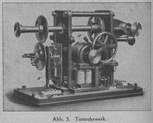 Außerdem sind diese Turmuhrwerke so eingerichtet, daß sie selbstätig auf die