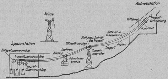 Gelände; mußte eine besondere Hilfsseilbahn neben der eigentlichen Trasse errichtet
