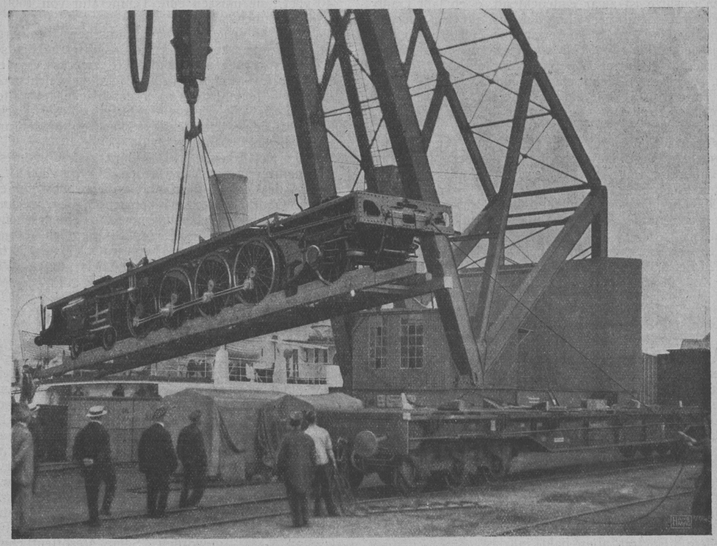 Lokomotiv-Verladungen im Hamburger Hafen. Soeben