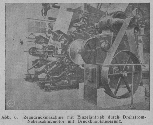 Abb. 6. Zeugdruckmaschine mit Einzelantrieb durch Drehstrom-Nebenschlußmotor