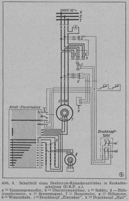 Abb. 9. Schaltbild eines Drehstrom-Kalanderantriebes in Kaskadenschaltung