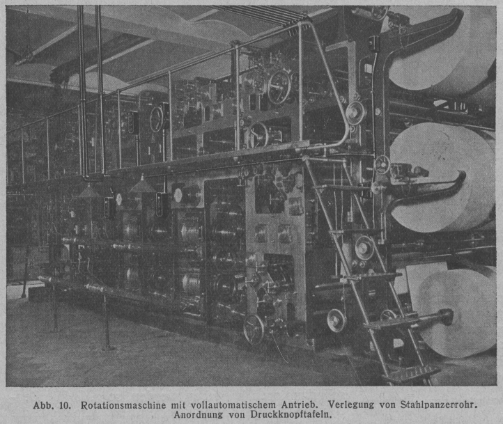 die größeren Schnellpressen und namentlich die Rotationsmaschinen (Abb. 10).