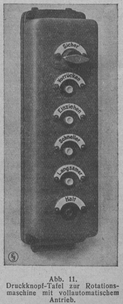 Abb. 11. Druckknopf-Tafel zur Rotationsmaschine mit vollautomatischem