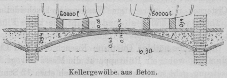 Theile des Arbeitsbodens sind aus Cementbeton hergestellt und ebenso die Gewölbe der