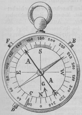 indem man die blaue Spitze der Magnetnadel auf die Declinationsmarke G bezieh. auf den Zeiger C