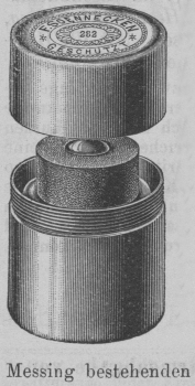 Aeussere der aus Messing bestehenden Hülse ist fein vernickelt und polirt.