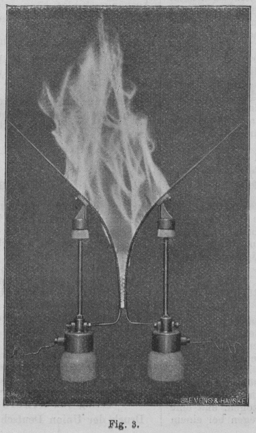 elektrischen Lichtbogen ein, so wird dieser durch die aufsteigende warme Luft und