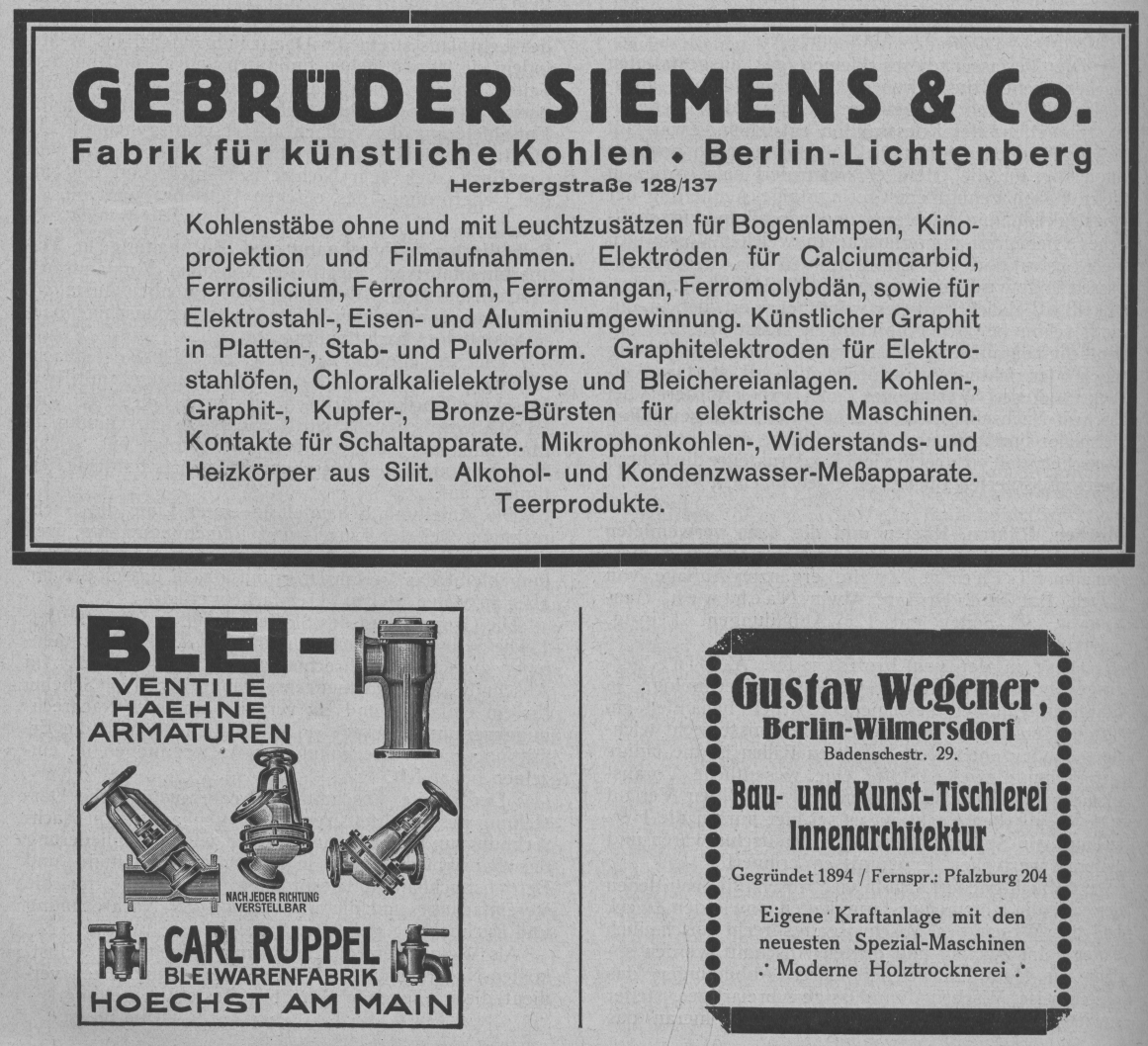 Siemens-Schuckertwerke G.m.b.H. sowie die gemeinsamen Versuche dieser Firma mit den
