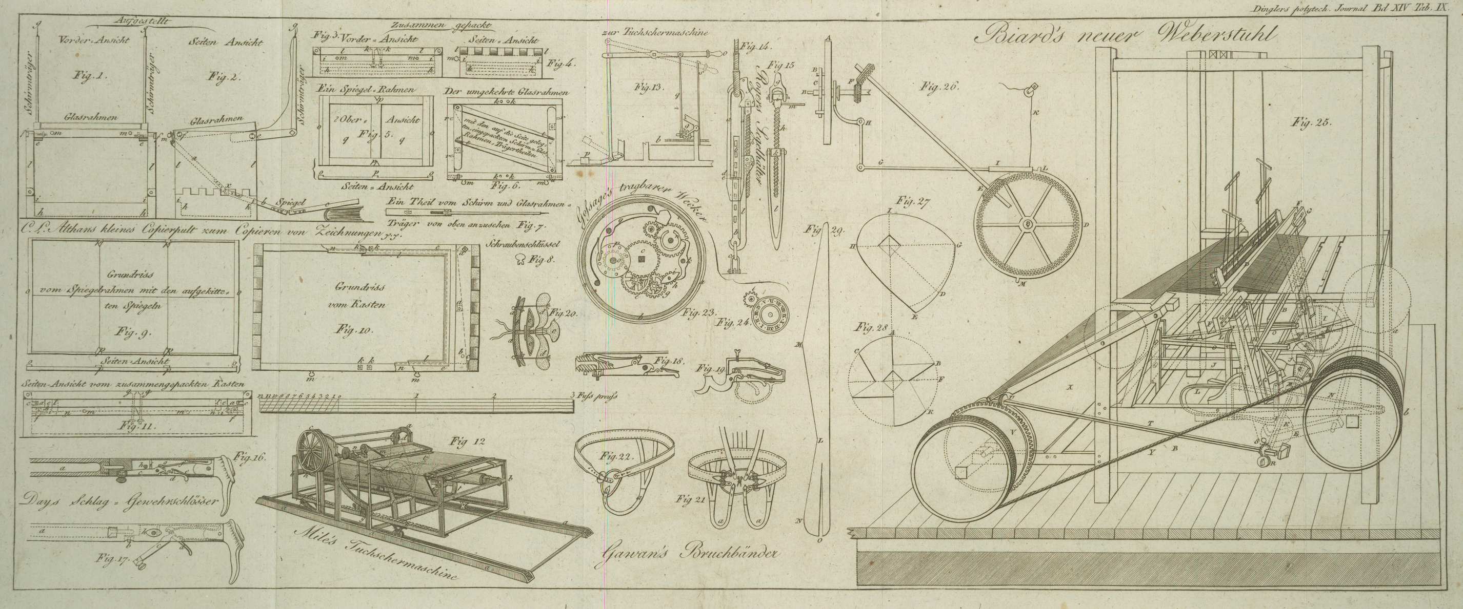 XV. Vorrichtungen bei dem Weben glatter und figurirter Zeuge, welche man sowohl