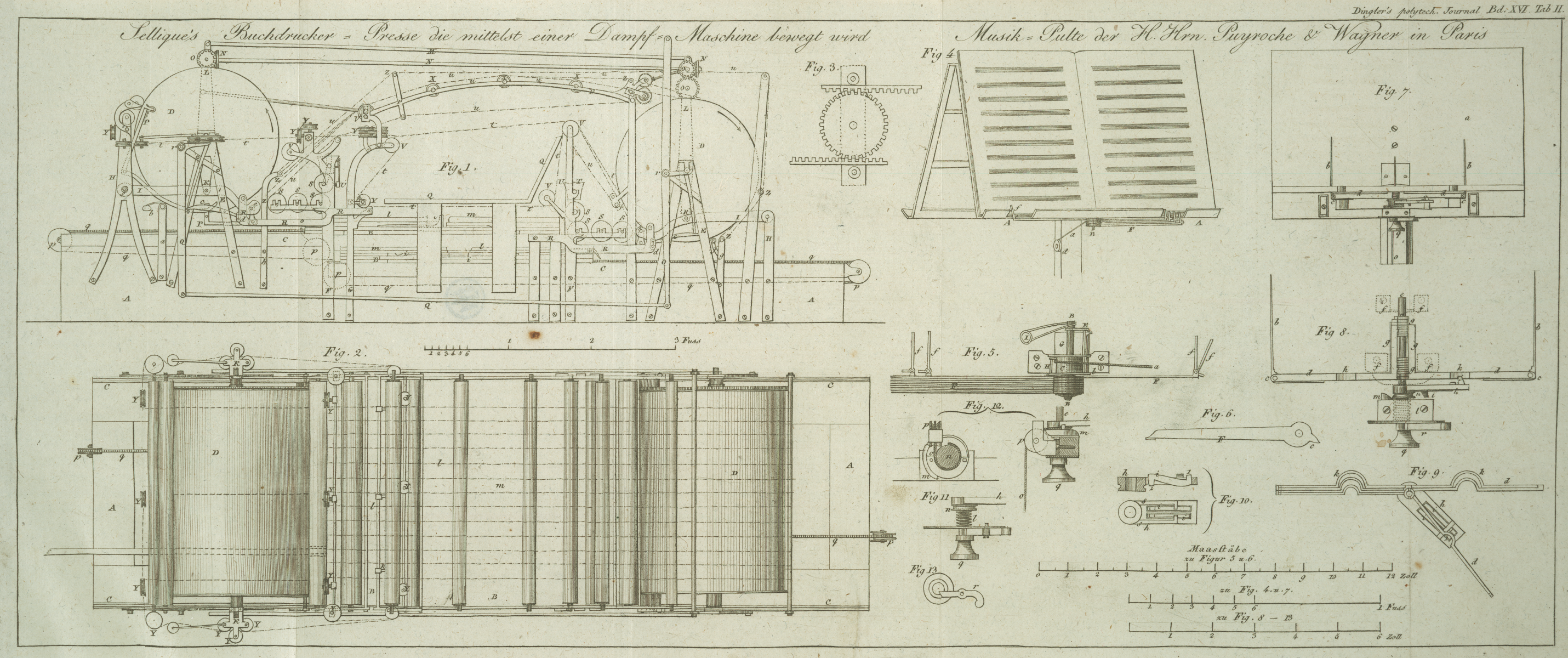 betriebenen Drukerpressen; von Hrn. Sèllique. Mit Abbildungen