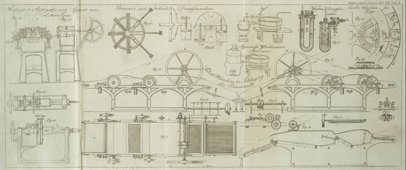 I. Beschreibung einer Maschine zum Schlagen der Baumwolle, v. Hrn. Pihet. Mit Abbildungen auf Tab. I. S. 1