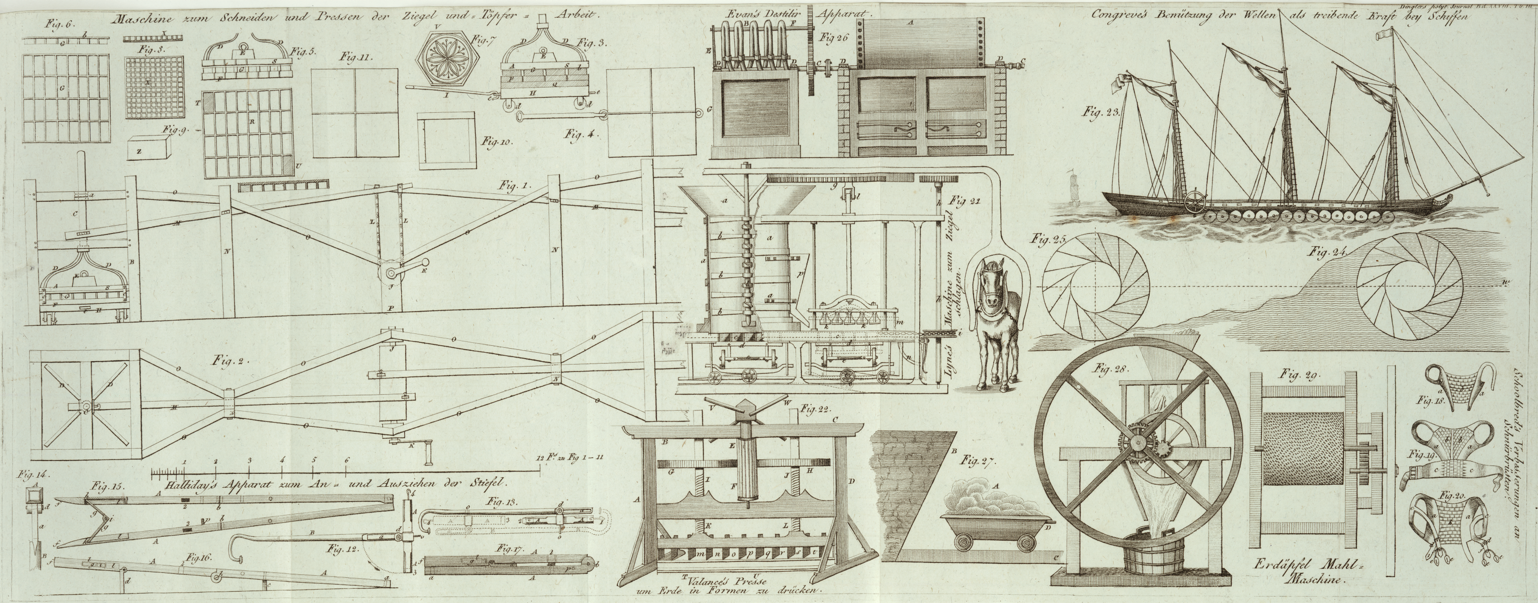 XXVI. Beschreibung einer Maschine zum Schneiden und Pressen der Ziegel,
