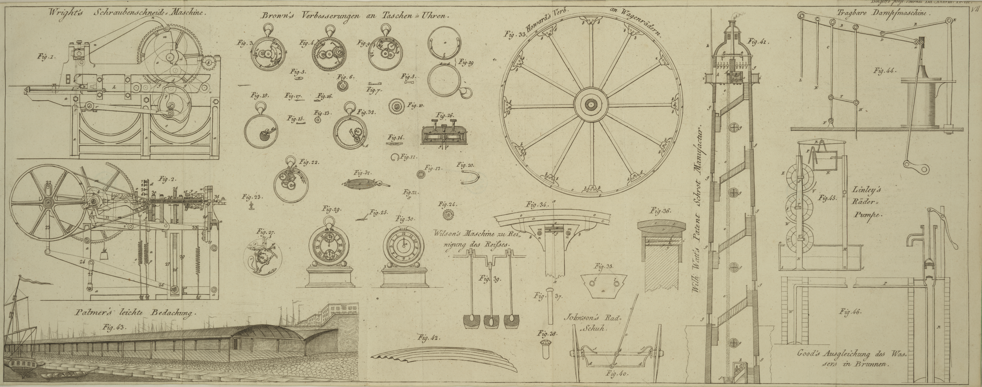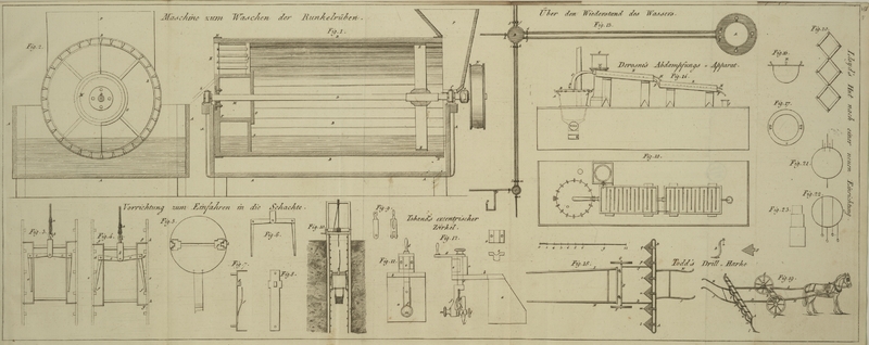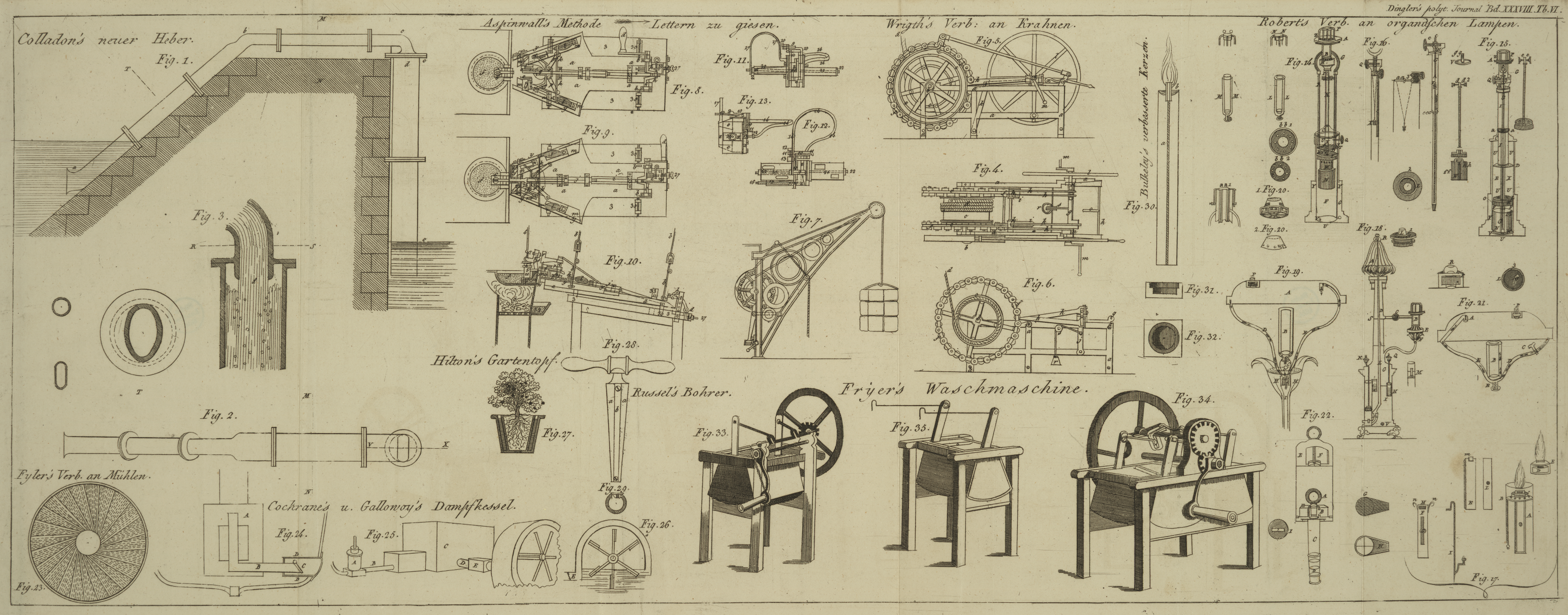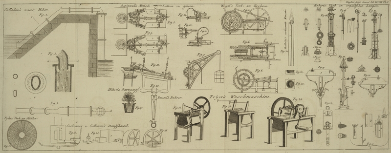 und Bohrmaschinen, Bortenweberei etc.), so wie auf 19 Kupfertafeln die Abbildungen zahlreicher