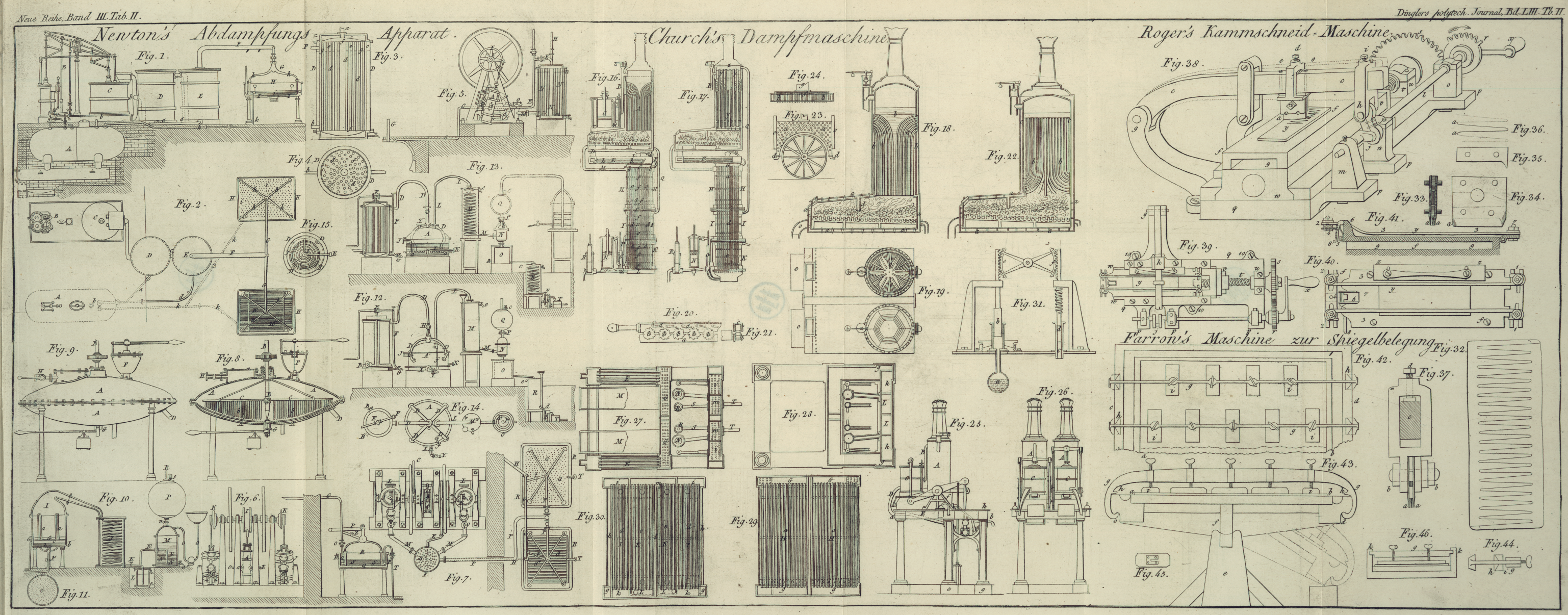 Erfindung und Anwendung von Maschinen, und uͤber die Benuzung der Dampfmaschine bei