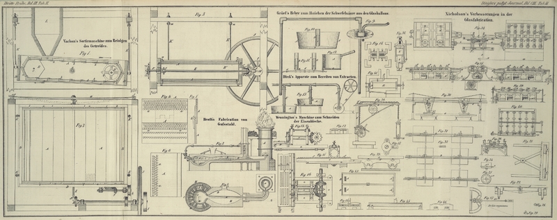 XXII. Verbesserungen in der Glasfabrication, worauf sich William Nicholson, Ingenieur zu Manchester, und George Wadsworth auf der Sutton-Glashütte in der Grafschaft Lancaster, am 5. März 1846