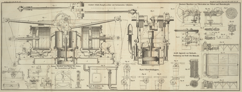 XVIII. Beschreibung einer Schiffsdampfmaschine mit horizontal liegenden