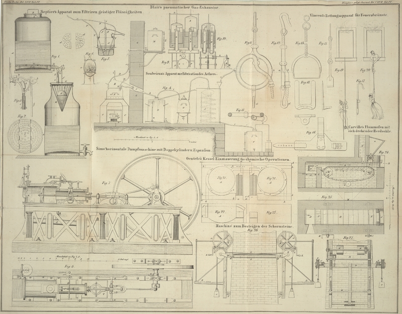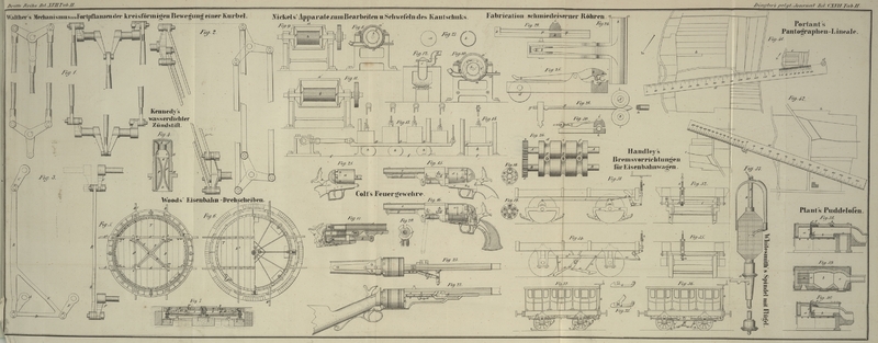 Miscellen. Ueber die Heizung der Eisenbahnwagen. S. 74Einwirkung des Dampfes auf den Aggregationszustand des Kupfers. 77.Mechanische Einwirkung des Papiers auf harten Stahl. 77.Anthracit als Heizmaterial. 77.Gasflammen vor Verlöschen durch den Luftzug zu bewahren. 77.Ueber die Temperatur des Schmelzofens und des Metalls beim Gießen eiserner Kanonen.