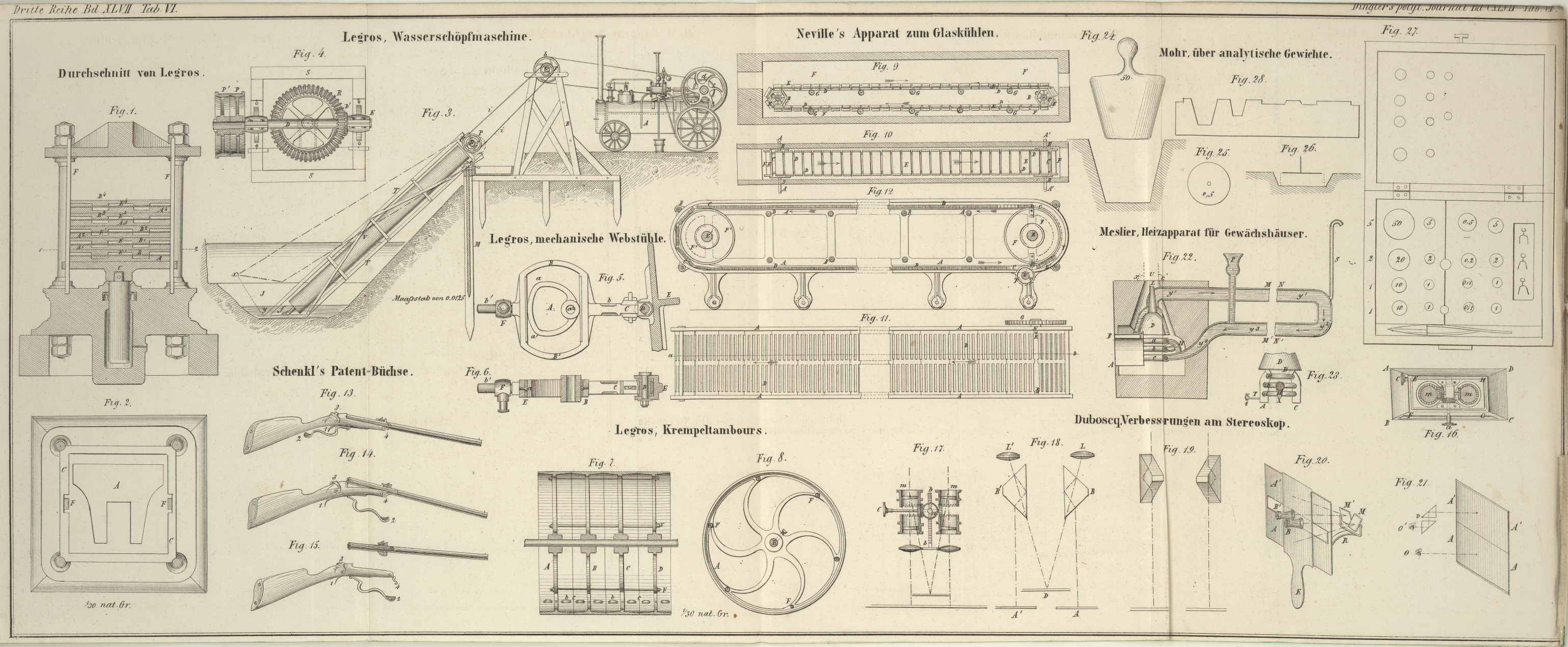 VI. Beschreibung der neuen Buchdruckerpresse von J. Tarbox in Providence, Rhode Island. Mit Abbildungen auf Tab. I. 9