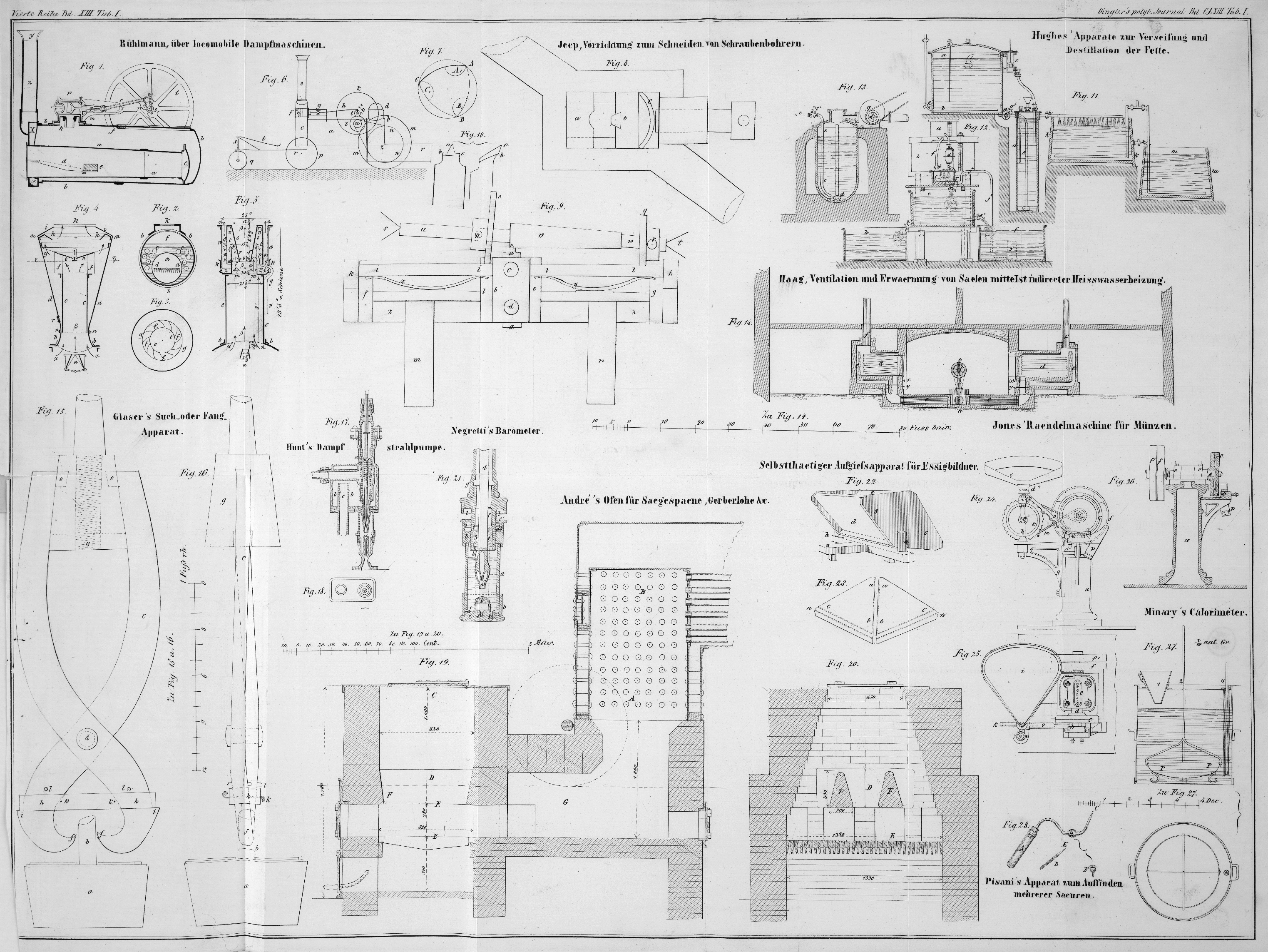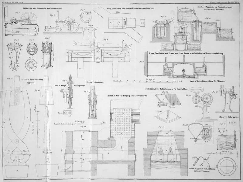 II. Einiges über locomobile Dampfmaschinen in constructiver und polizeilicher Hinsicht; vom Professor Rühlmann. Aus den Mittheilungen des hannoverschen Gewerbevereins, 1861 S. 244. Mit Abbildungen auf Tab. I. Rühlmann, über locomobile Dampfmaschinen in constructiver und polizeilicher Hinsicht.