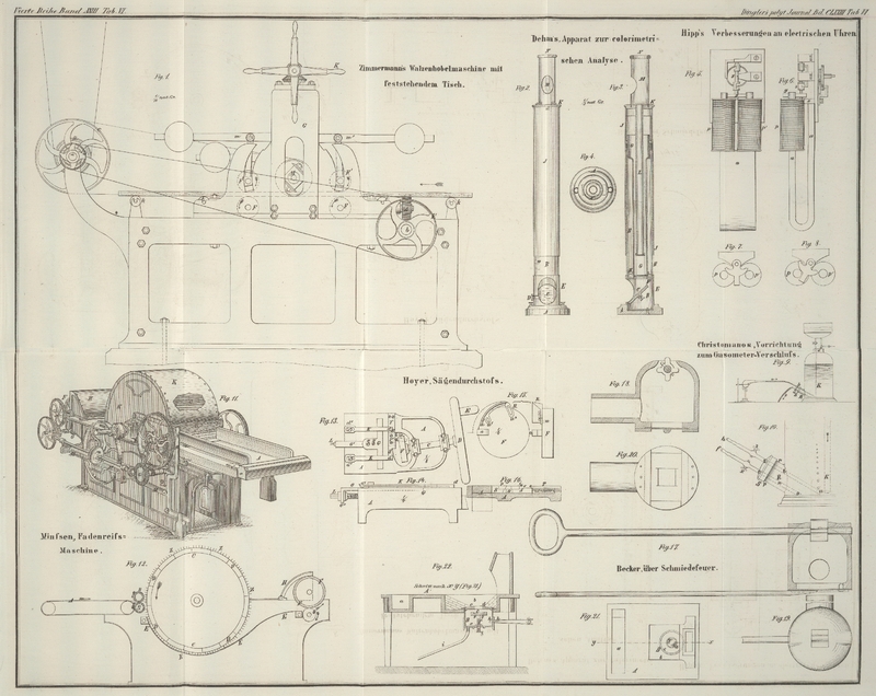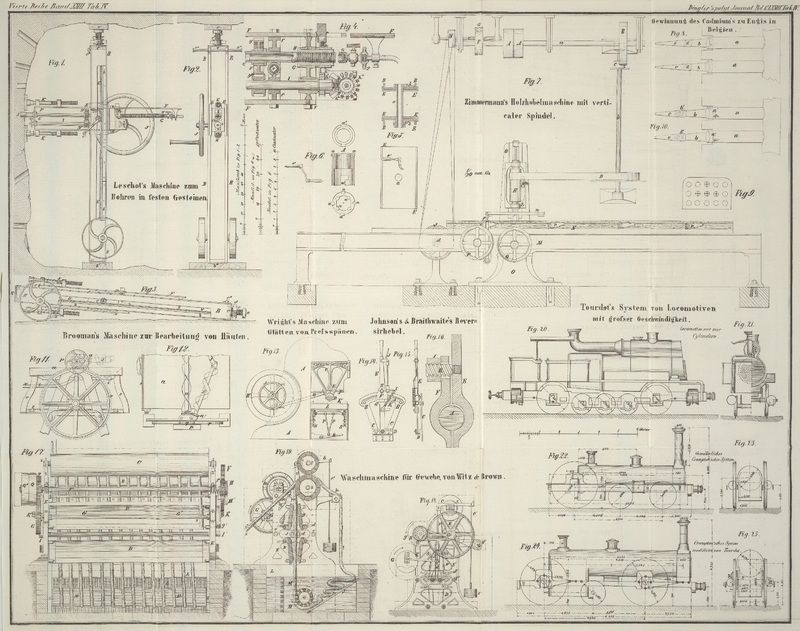 XVII. Skizzen von Maschinen zur Bearbeitung des Holzes aus der Fabrik von Joh.