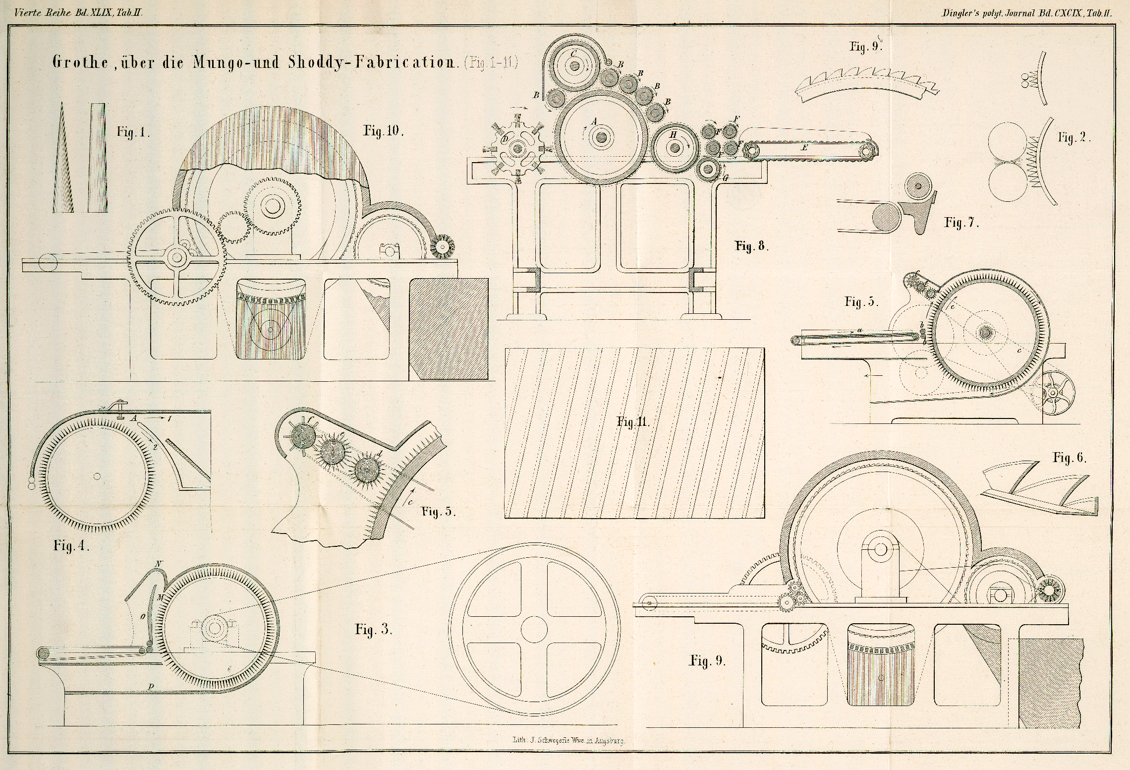 IX. Die Mungo- und Shoddy-Fabrication; von Dr. Hermann Grothe. Mit Abbildungen auf Tab. II. 15