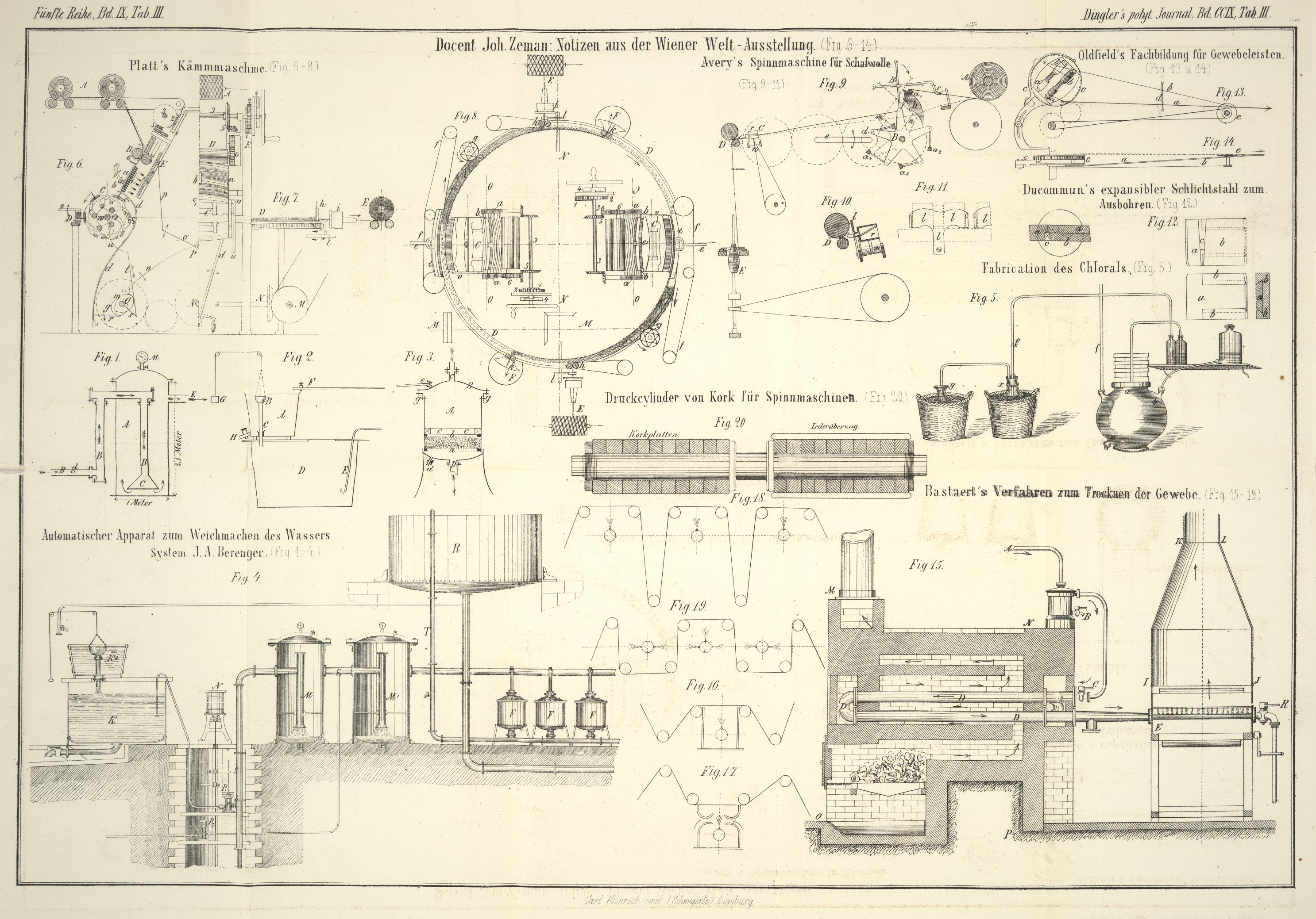 24. Platt's Kämmmaschine, Patent Little und Eastwood in Bradford. – 25.