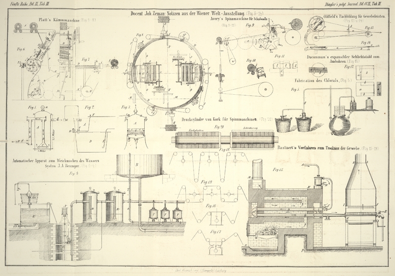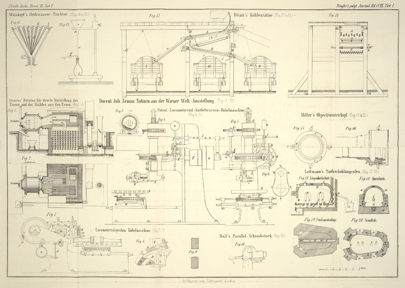 – 18. Selbstthätiger Oelwolf für Schafwolle, von Cölestin Martin in Verviers. – 19. Neuer Dampfmotor, von Friedr. Siemens in Dresden. – 20. Apparat zum Nachdrehen der