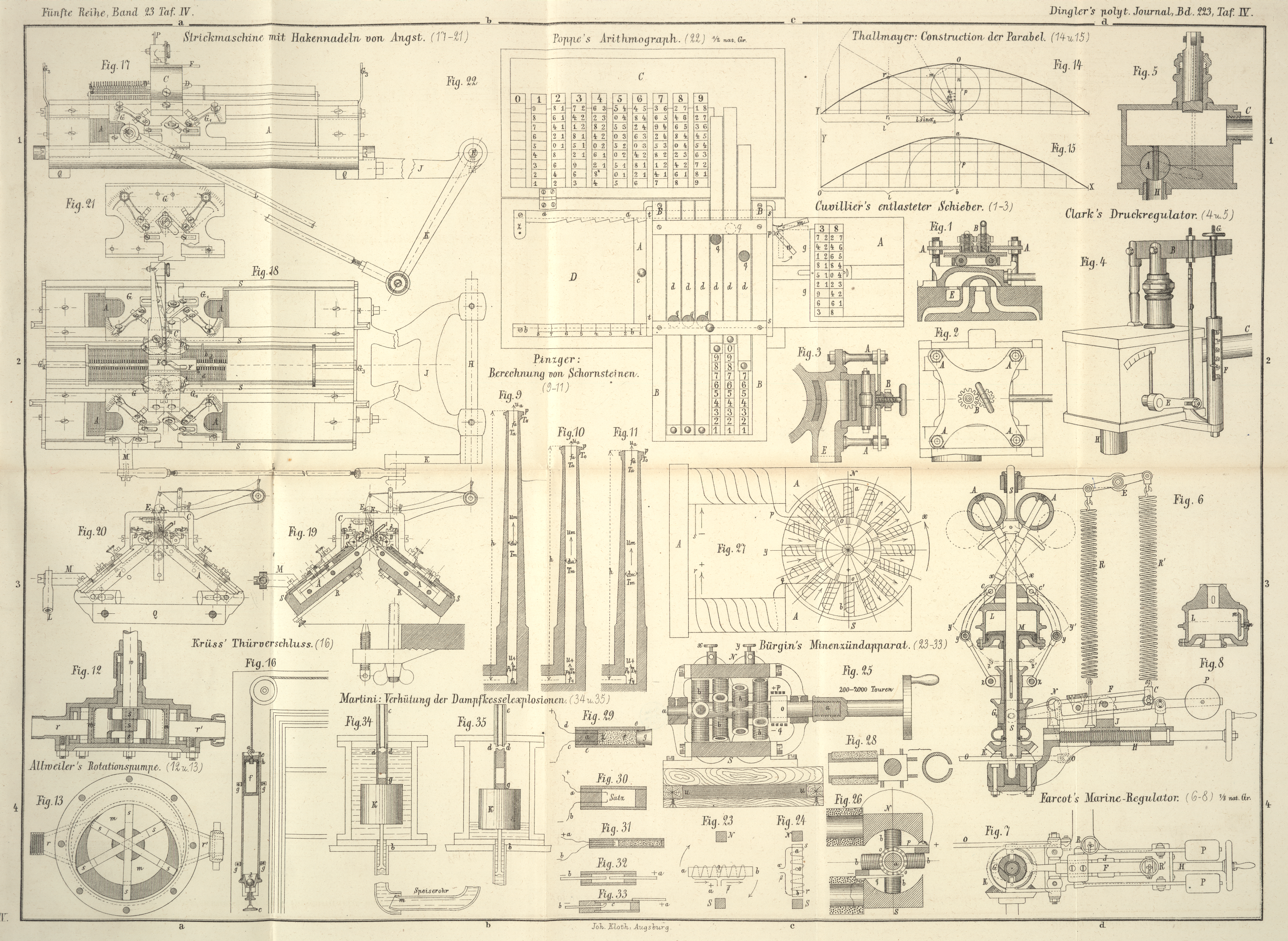 Ueber Strickmaschinen mit gewöhnlichen Haken- oder Spitzennadeln; von Director G. Willkomm. 62