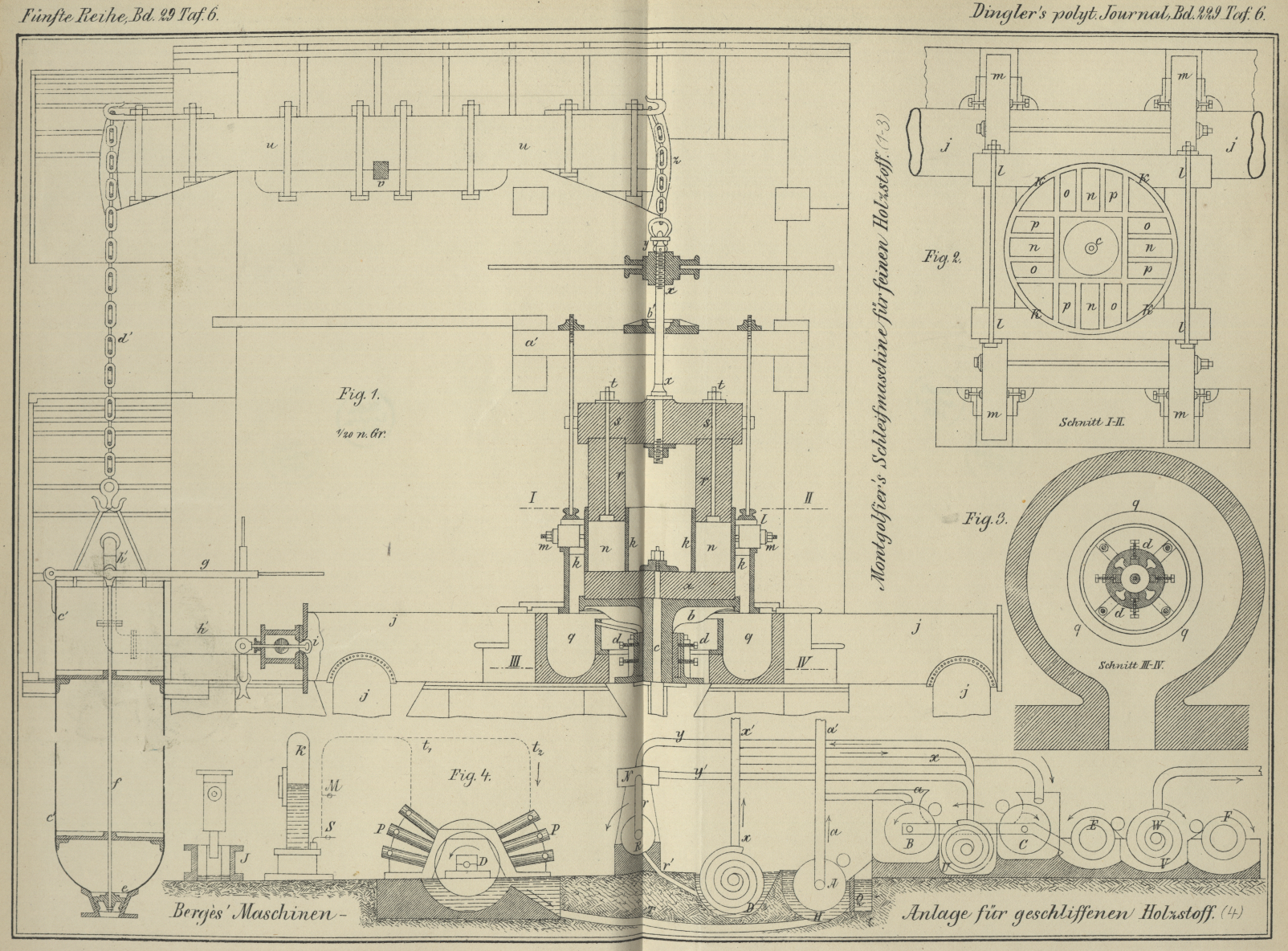 Verbesserungen an Maschinen zur Erzeugung des geschliffenen Holzstoffes; von A. Bergès * 37