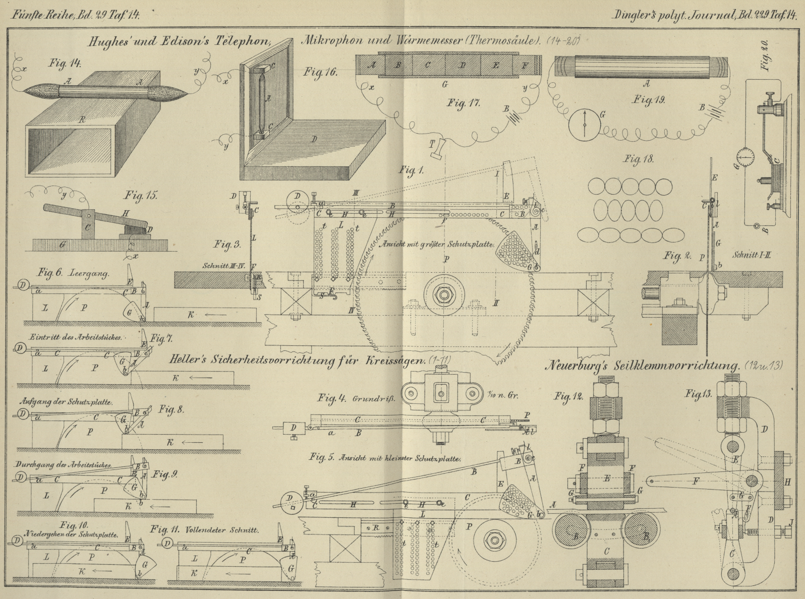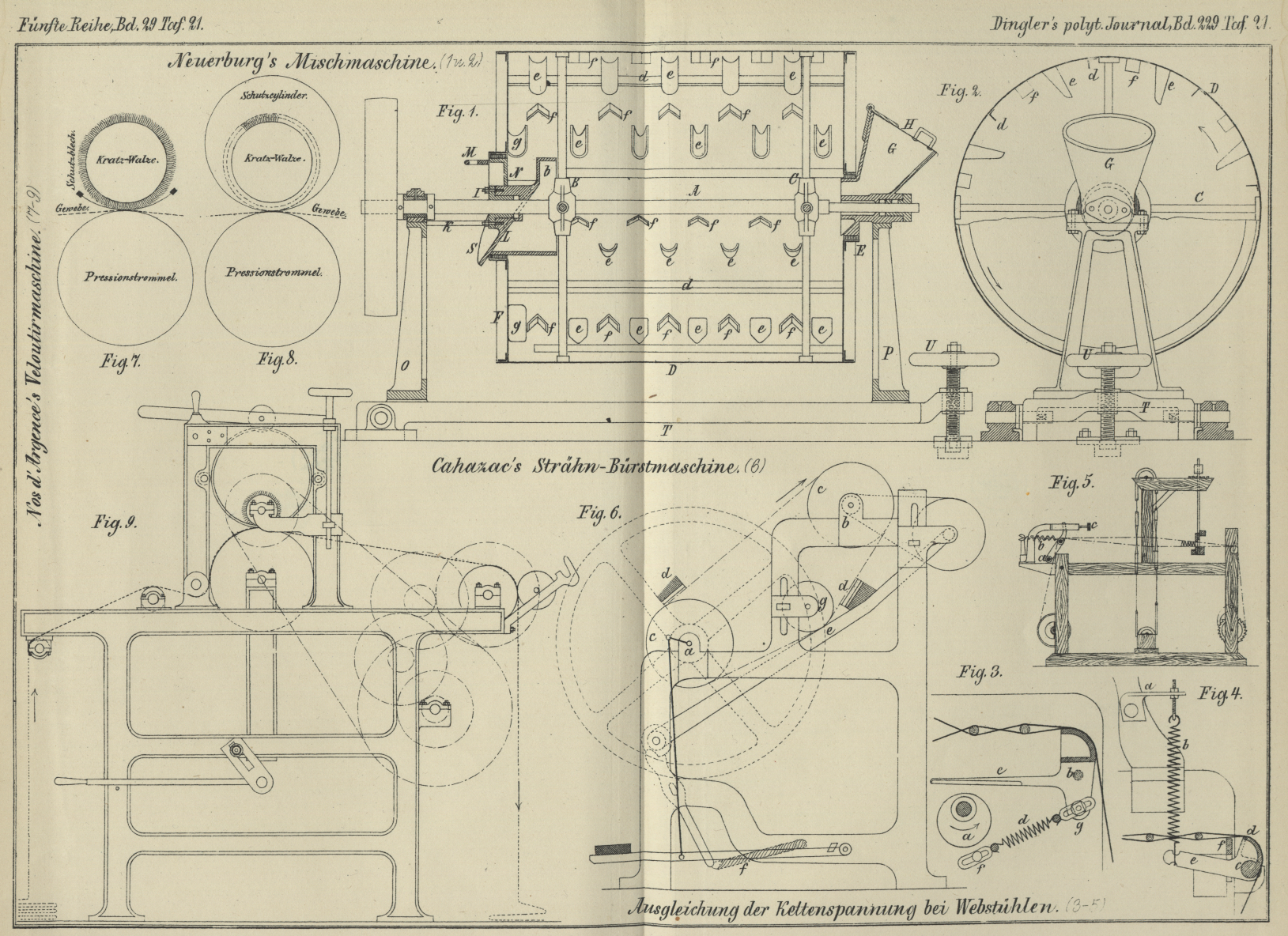Karten 6Gadel's Trittmaschine 7Razes' Maschine für Schnüre zu Uhrkettchen * 7Beau's Webstuhl für Säcke ohne Nath * 8Delpeuch's Webevorrichtung für Schuhe * 8Chaufourier's Egrenirmaschine 9Hackerbewegung an Mercier's Doppelkarde * 9Imbs' Baumwoll-Kämmmaschine 10Masurel's Flachshechel- und Anlegemaschine * 11S. Walker's Schnurmaschine * 11Heraud's Seillitzen-Spinnmaschine * 12Nos d'Argence und Chendelier's Veloutirmaschine * 13Desplas' Walkmaschine 13Stoffe mit Velour aus Federn 14