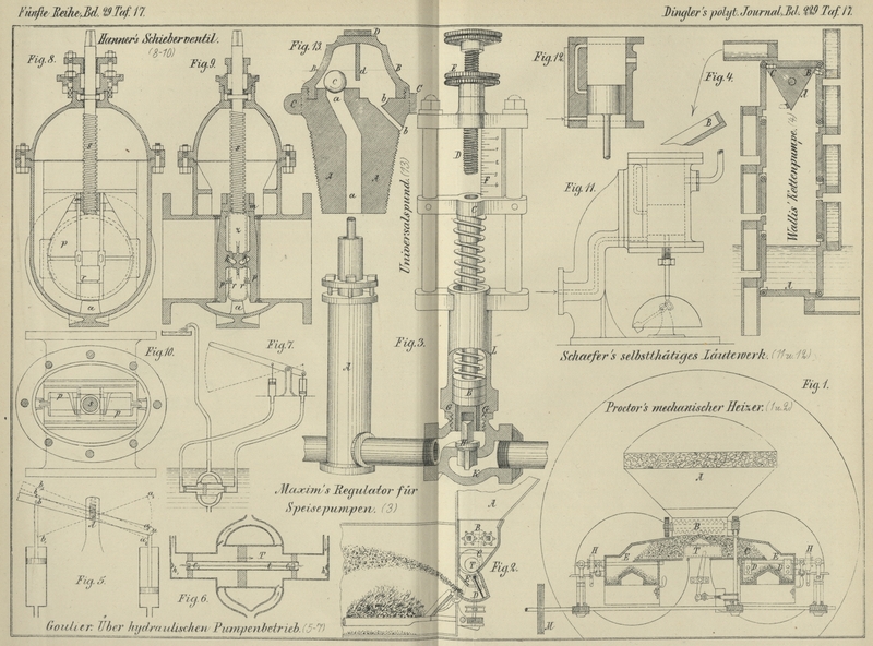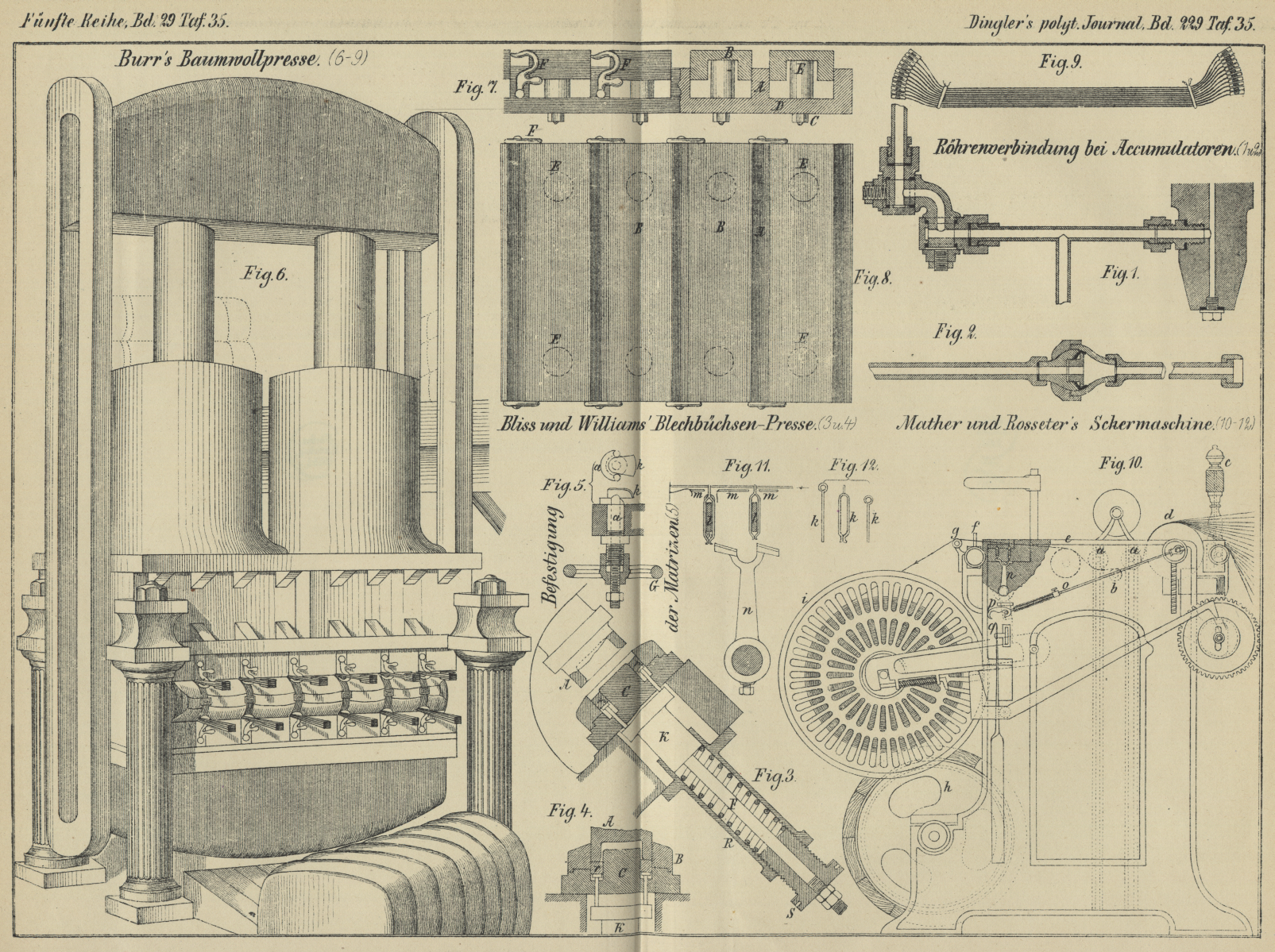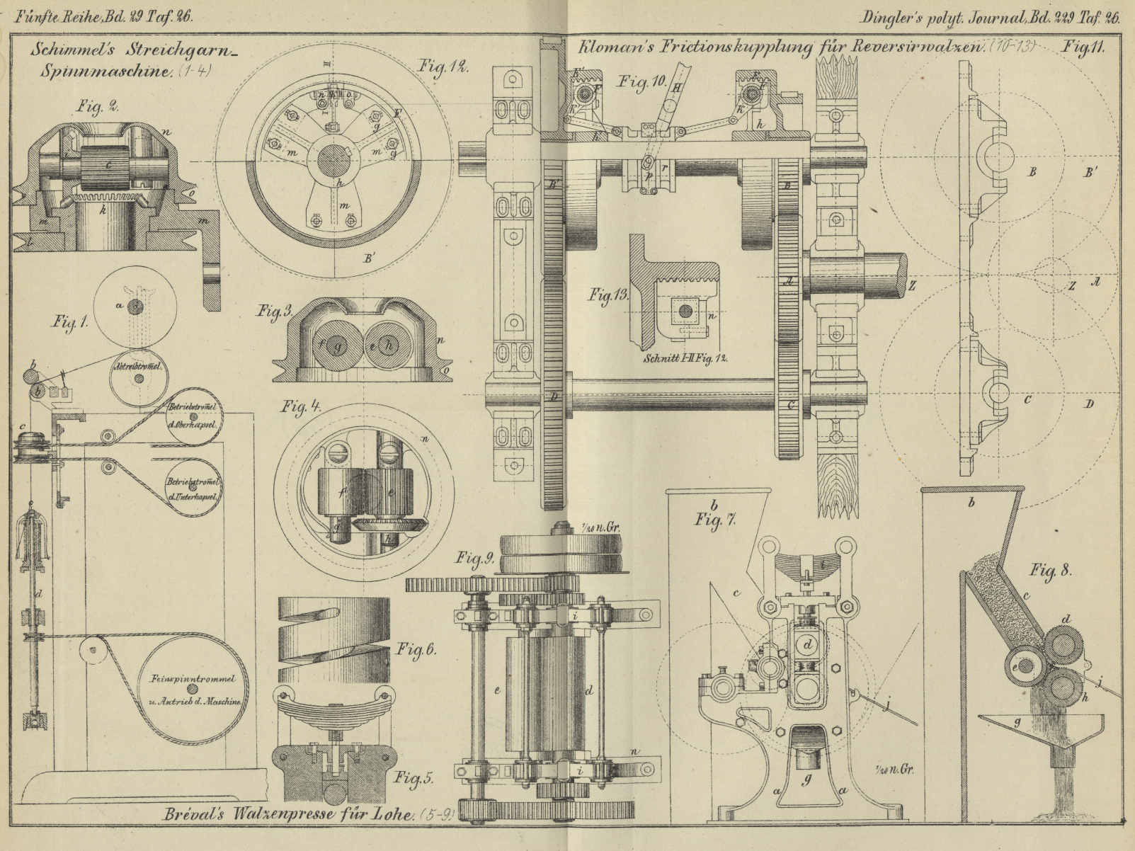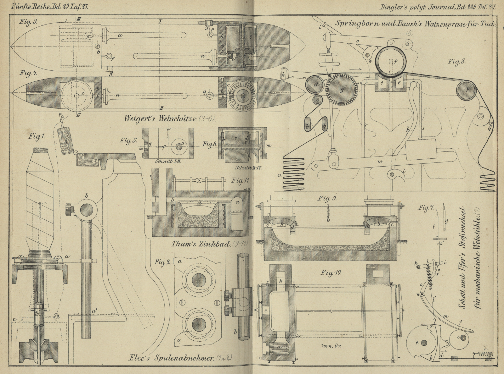 Nebenerfordernisse: Vautier's Buntdruck-Schnellpresse 2Hutinet's Tiegel-Schnellpresse 2Bodel's Numerirmaschine 3Textilindustrie: Vimont's Streichgarn-Spinnmaschine und