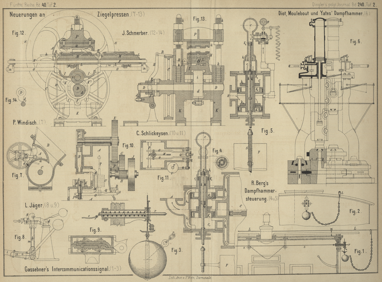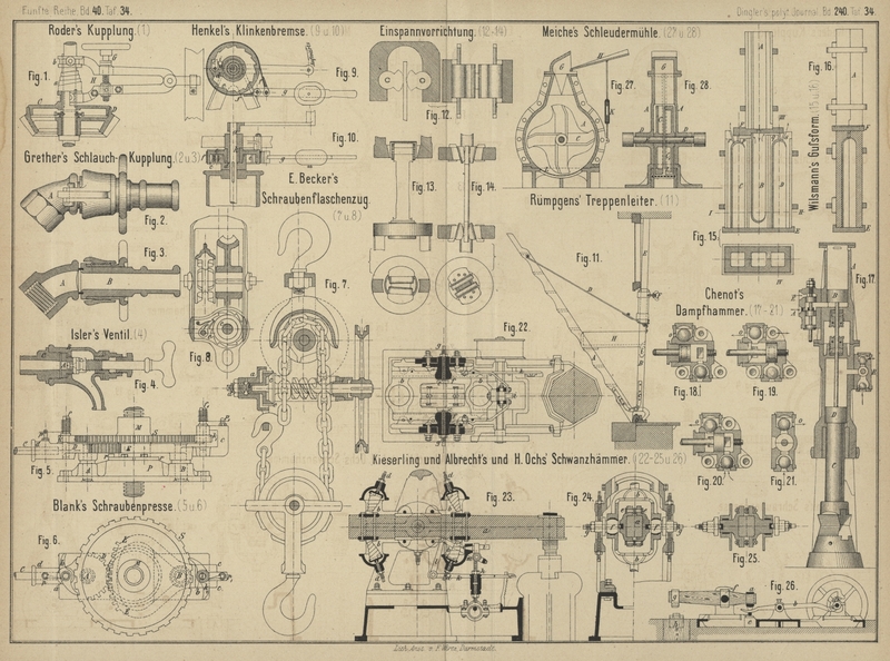 Gasfallhammer 7Robelet's Fallhammer 8Fr. W. Schnutz's selbstthätige Steuerung für Dampfhämmer