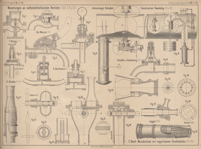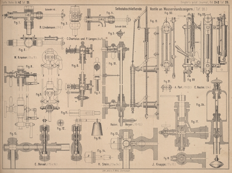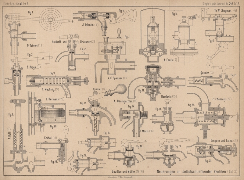49W. Wolf's Druckregulirung an Spundapparaten * 49L. A. Enzinger's isobarometrischer Abfüllapparat * 49C. A. Schulze's Vorrichtung zum Ausschank moussirender