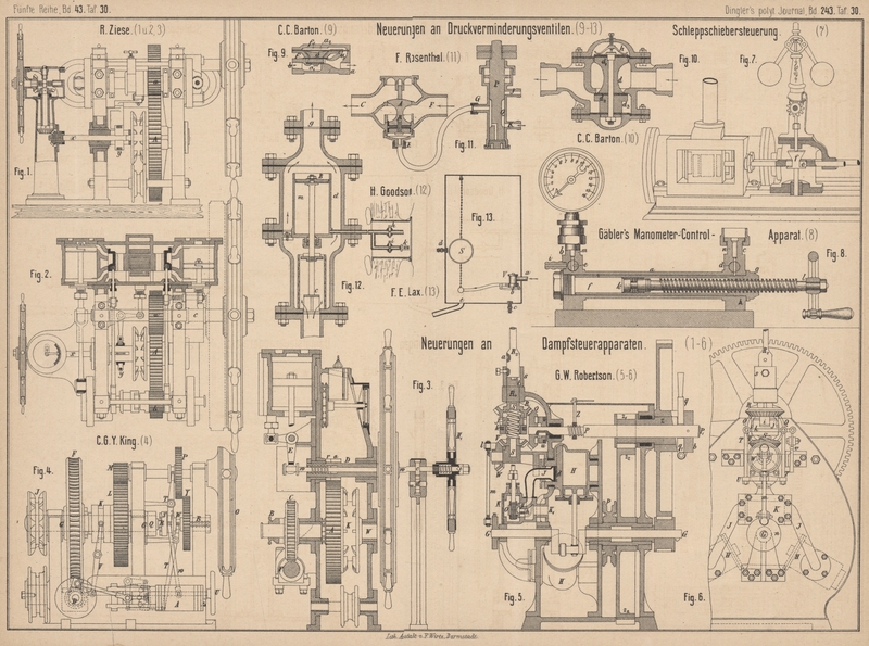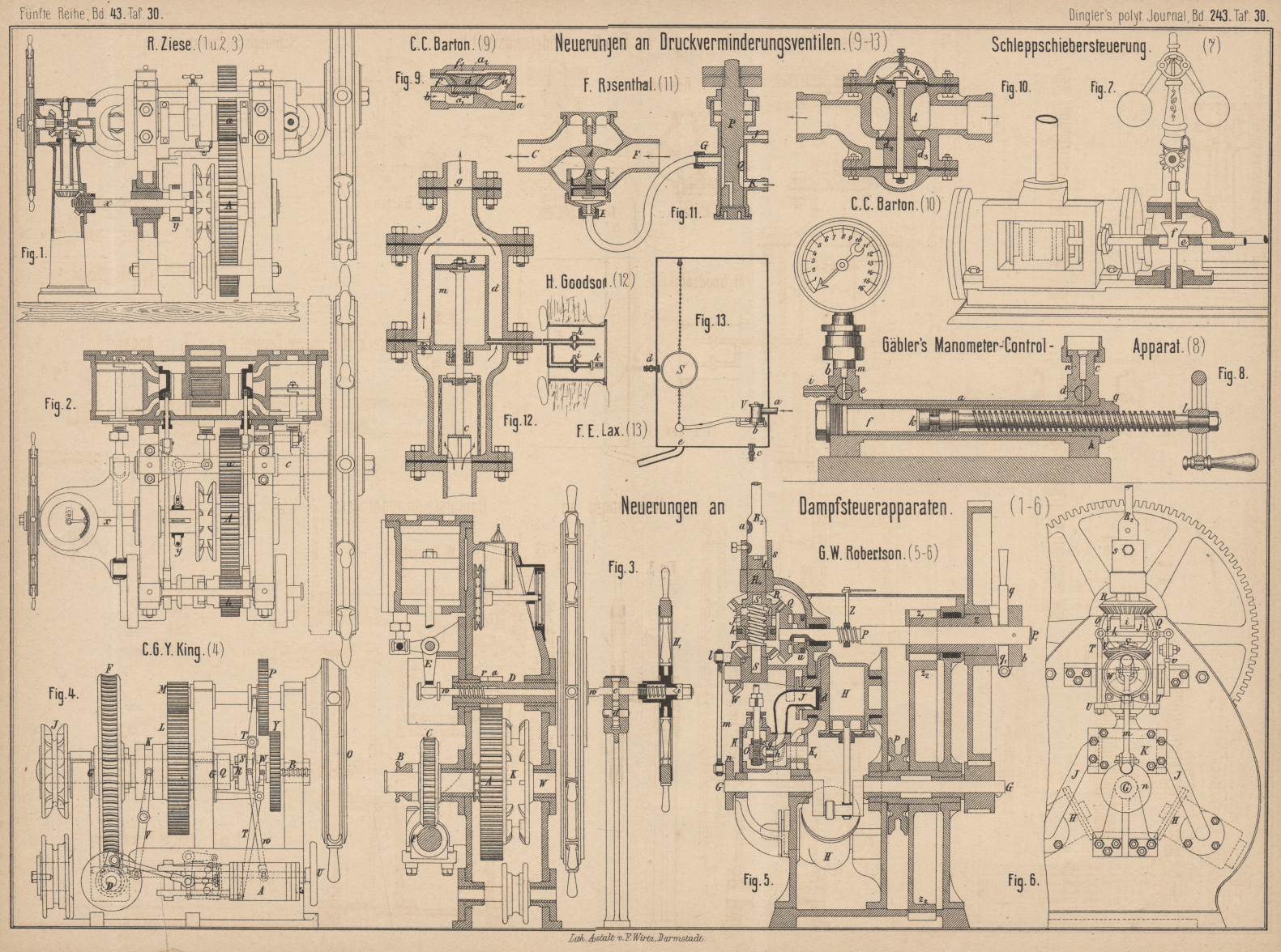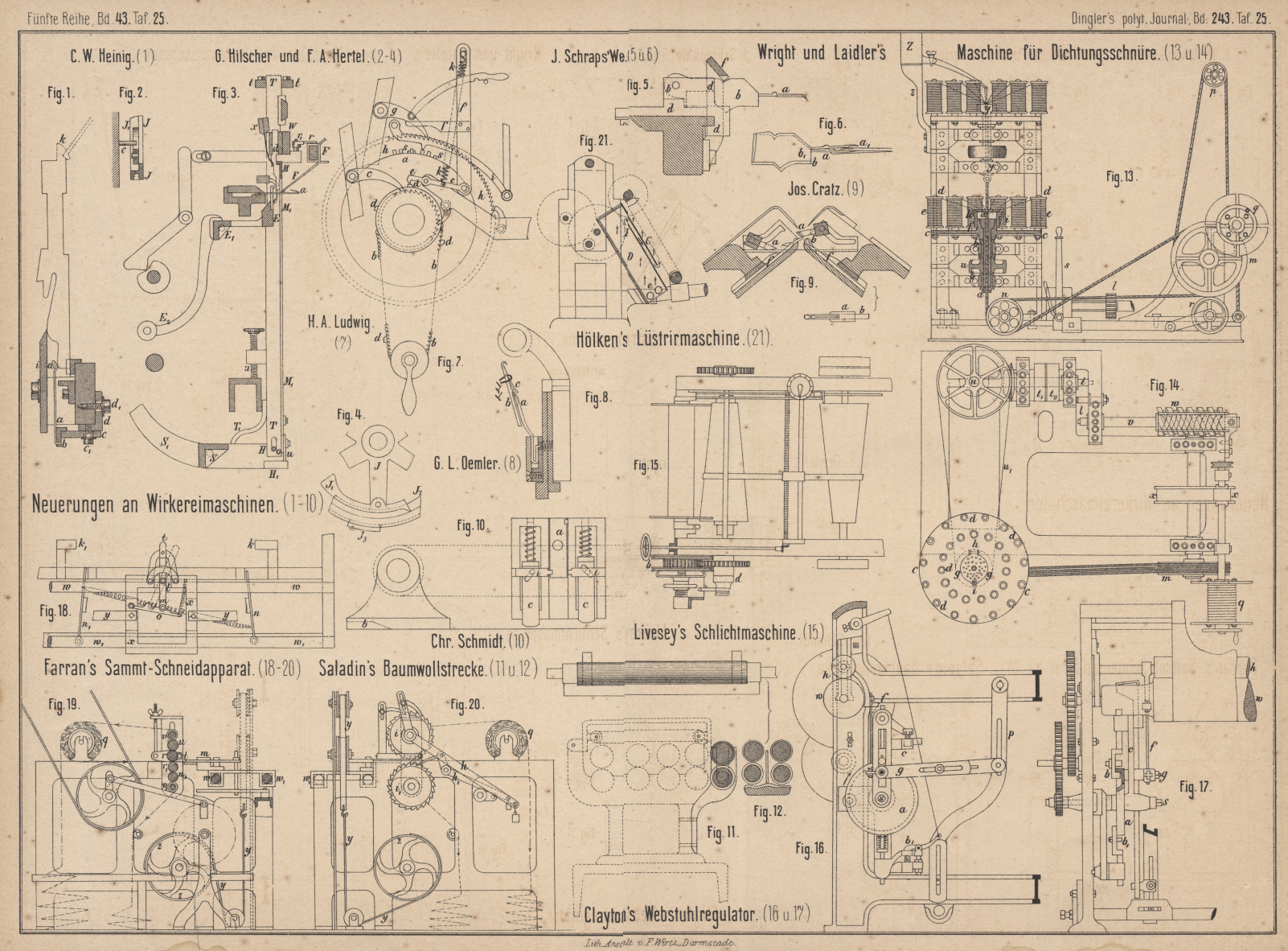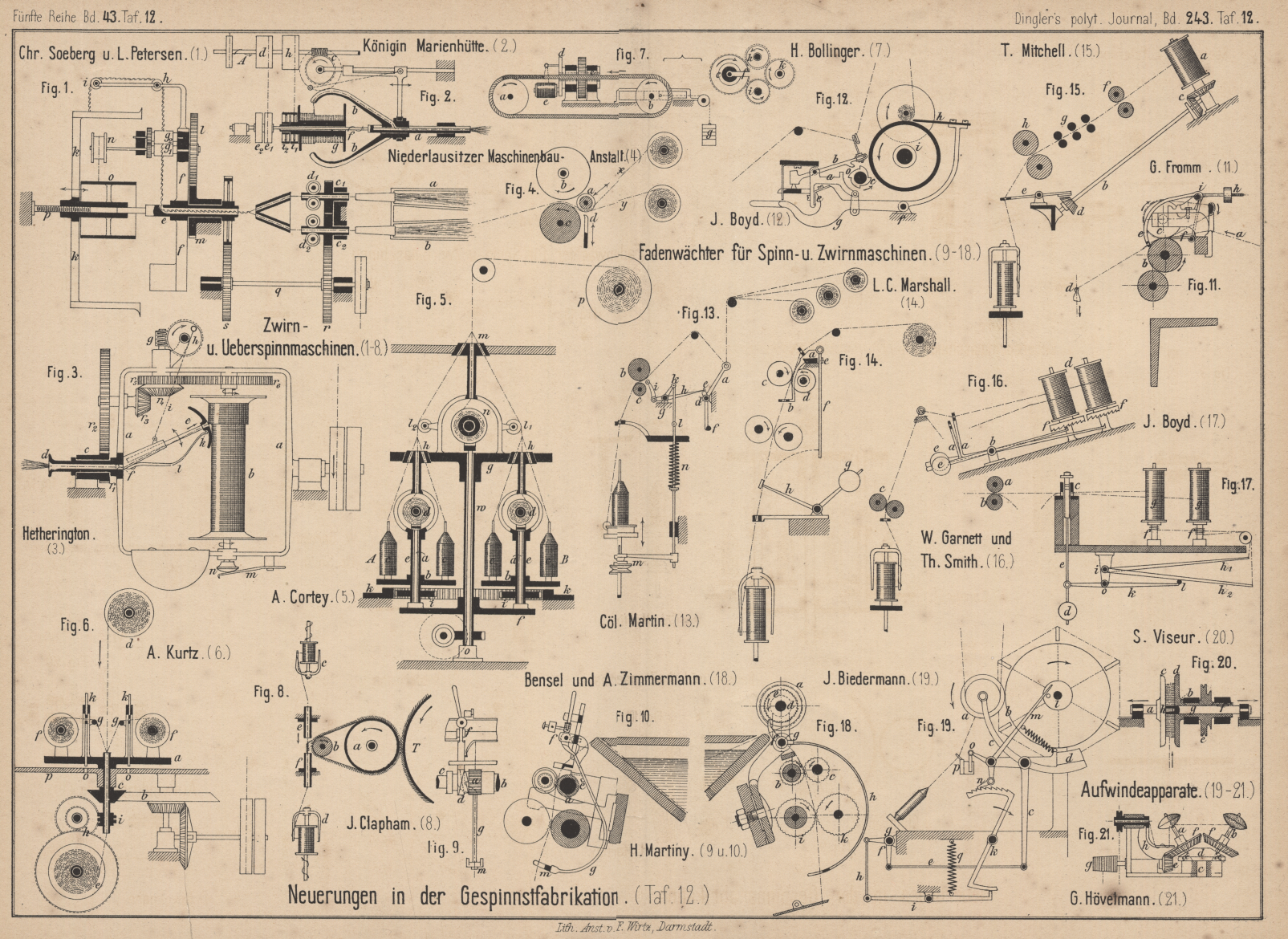 K. Charisius in Duisburg * 9Fl. Ladry in Brüssel * 10J. V. y Jové in Barcelona * 11J. Reimann in Paris * 11H. Haedicke in Kiel 12F. G. Voſs in Chemnitz * 12Dreyer, Rosenkranz und Droop in Hannover * 13