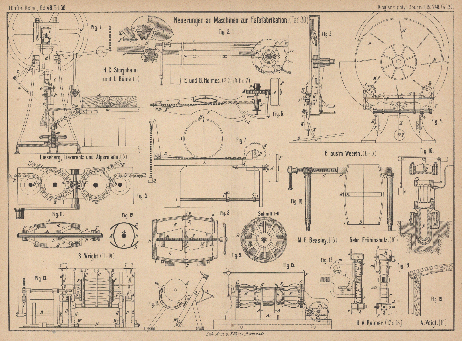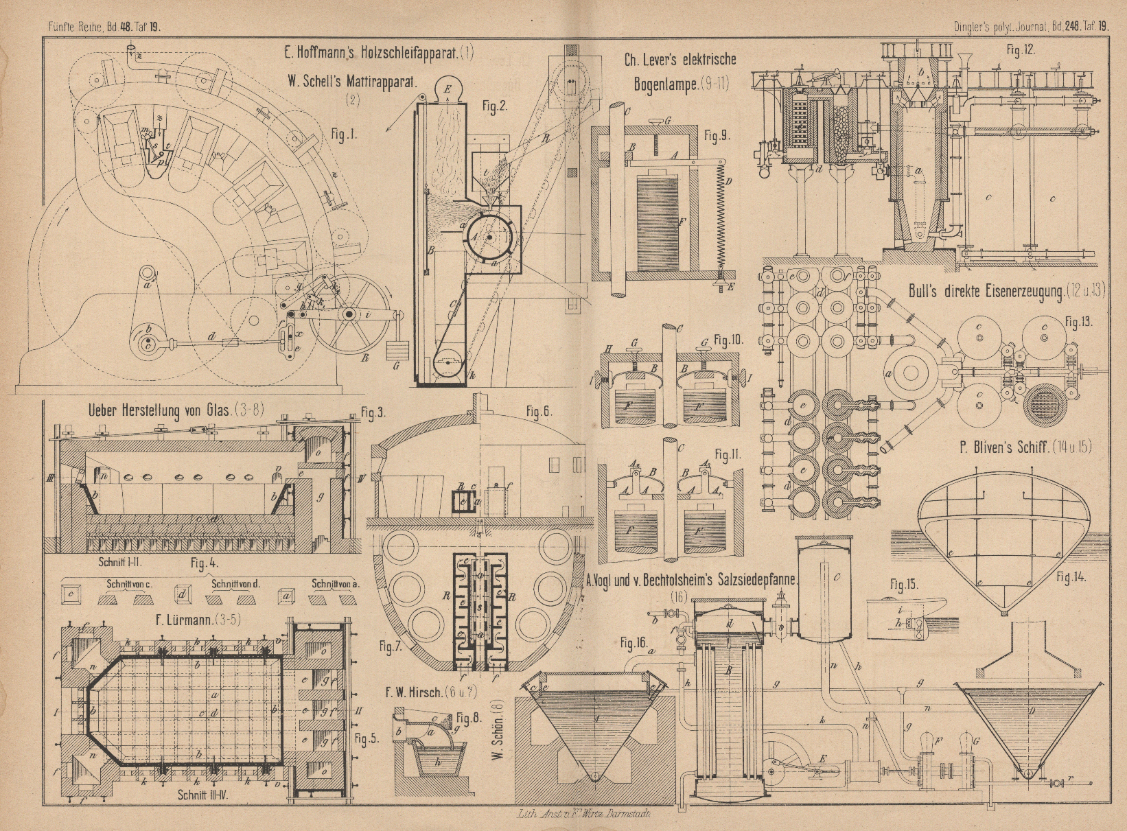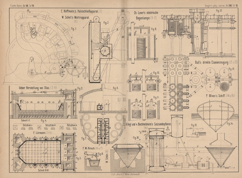 Hochofenschlacke u.a. 523– Analyse der Franklinit-Erze von New-Jersey; von P. Ricketts 523– H. Schmidtmann's Verfahren zur Herstellung von Zinkoxyd 523– Ueber die Umwandlung von Gras in Heu; von P. Frankland 523– Zur Untersuchung eiweiſsartiger Stoffe; von H. Struve 524– Zur Prüfung des fetten Mandelöles; von H. Hager 524– S. Cochran's Reinigung von Fetten u. dgl. mittels Ulmenrinde 524– A. Behne und F. Siegel's Hahnsteuerung (Berichtigung) 524