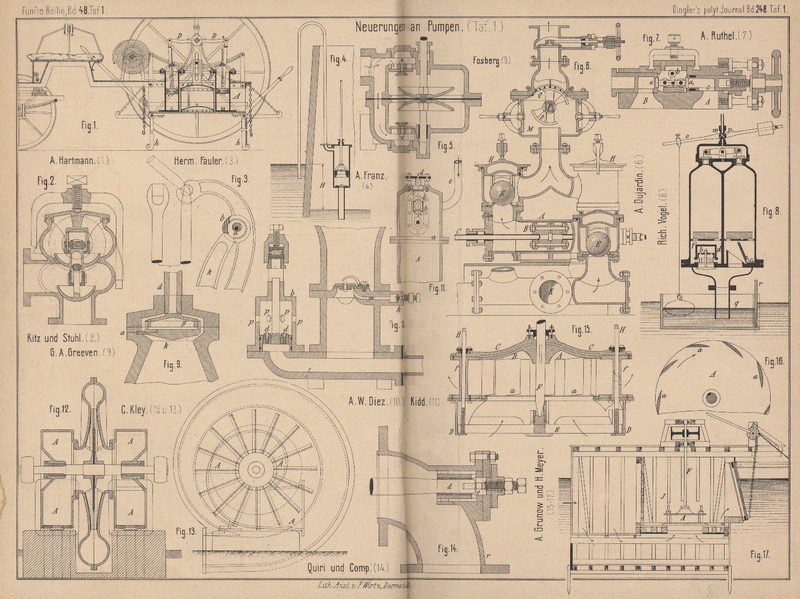 Kleinere Mittheilungen: Die erste Dampfmaschine in Deutschland; von E. Gerland 519– R. Rigoni's Zugvorrichtung für Kanalfahrzeuge 521– J. Boué's Kreissäge zum Abschneiden von Pfählen unter Wasser 521– Brause's Vorrichtung zum Entfernen des Grates an Maschinennadeln 522– Joh. Breuer's Sackhalter * 522– Ueber Mahlkosten für Traſsmehl u. dgl.; von Scharnweber 522– A. Badenberg's Verfahren zur Herstellung aus Schlacke gegossener Gegenstände 522– Oertgen und Schulte's Verfahren zur Herstellung einer Wärmeschutzmasse mit