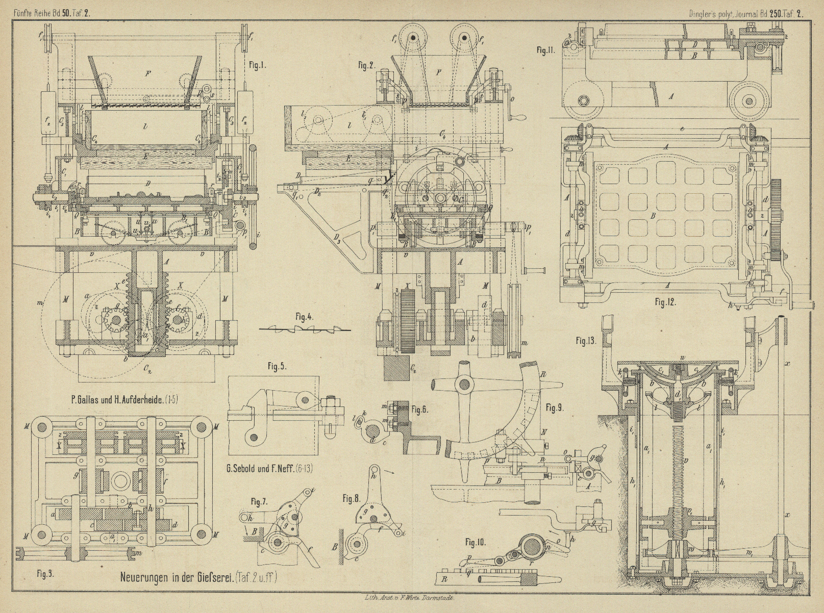 Ueber Neuerungen in der Gieſserei; von P. Gallas und H. Aufderheide bez. J. G. Sebold