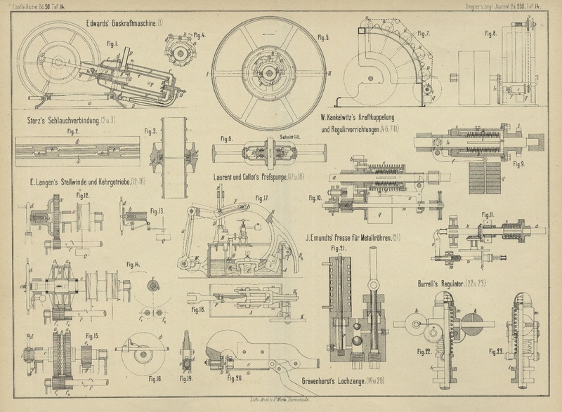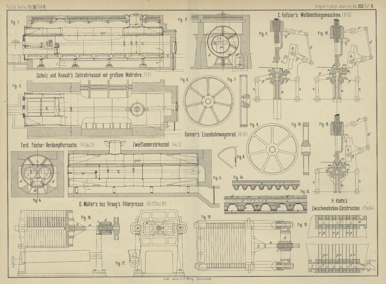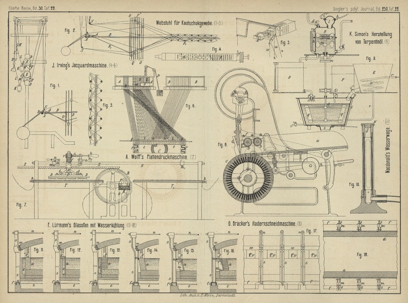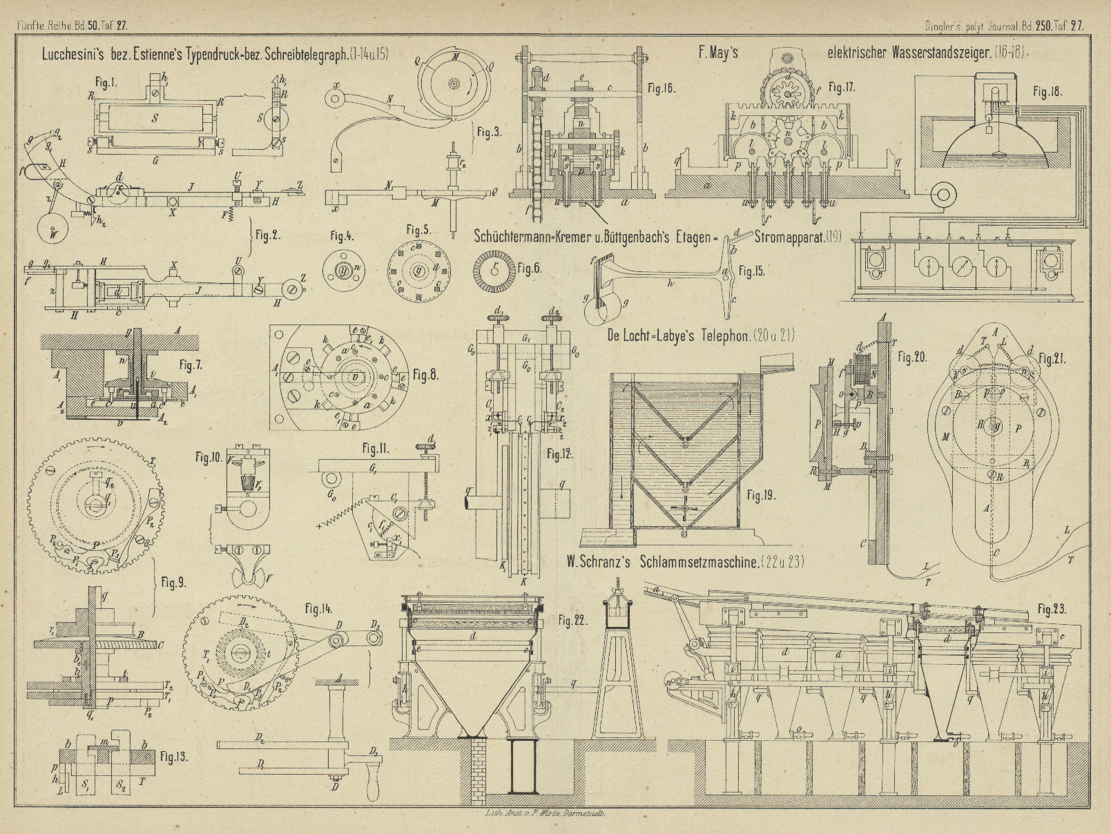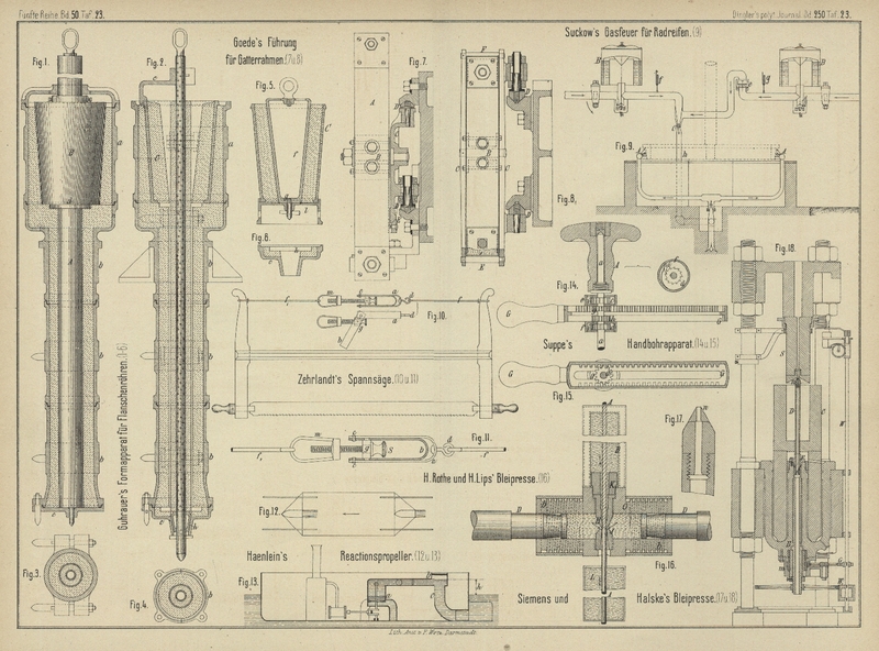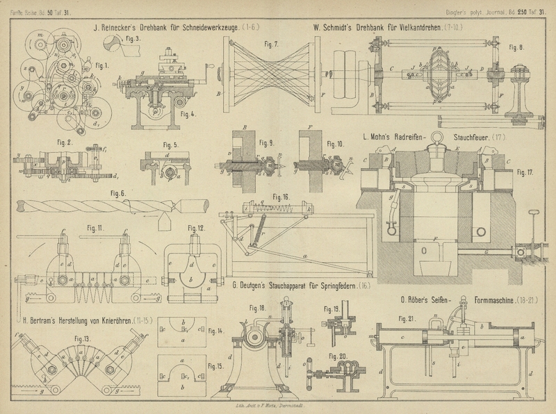 Nieten-Maschinen zur Fabrikation von Schloſsdornen u. dgl. 549W. Ebinghaus' elastische Unterstützung des Kurbellagers an Federhämmern 549S. Heimann's Controlapparat für Schifffahrtszwecke 549H. Waldstein's Hörrohr in Form eines Schirmgriffes * 550Neuere elektrische Eisenbahnen: Gräflich Schaffgotsch'sche Hohenzollerngrube,