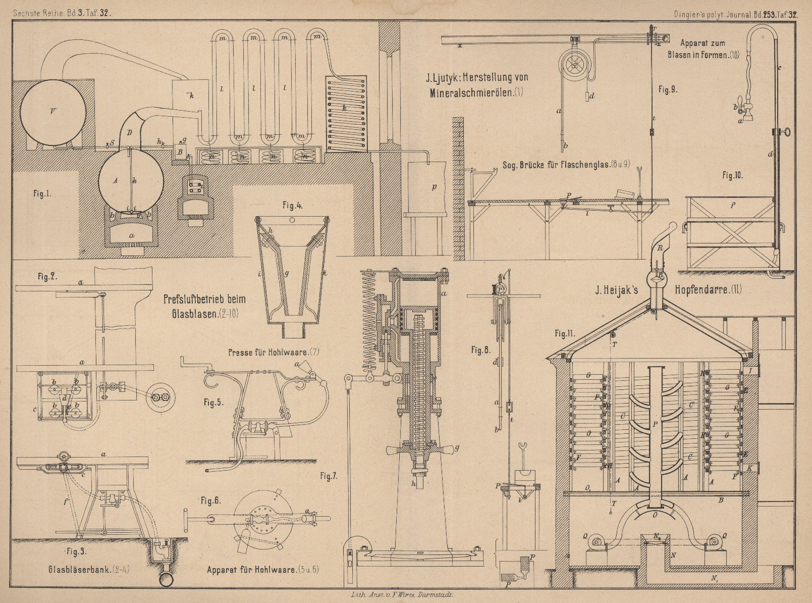 Anwendung von Preſsluft im Glashüttenbetriebe.