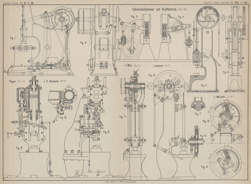 Schmiedehämmer mit Kraftbetrieb.